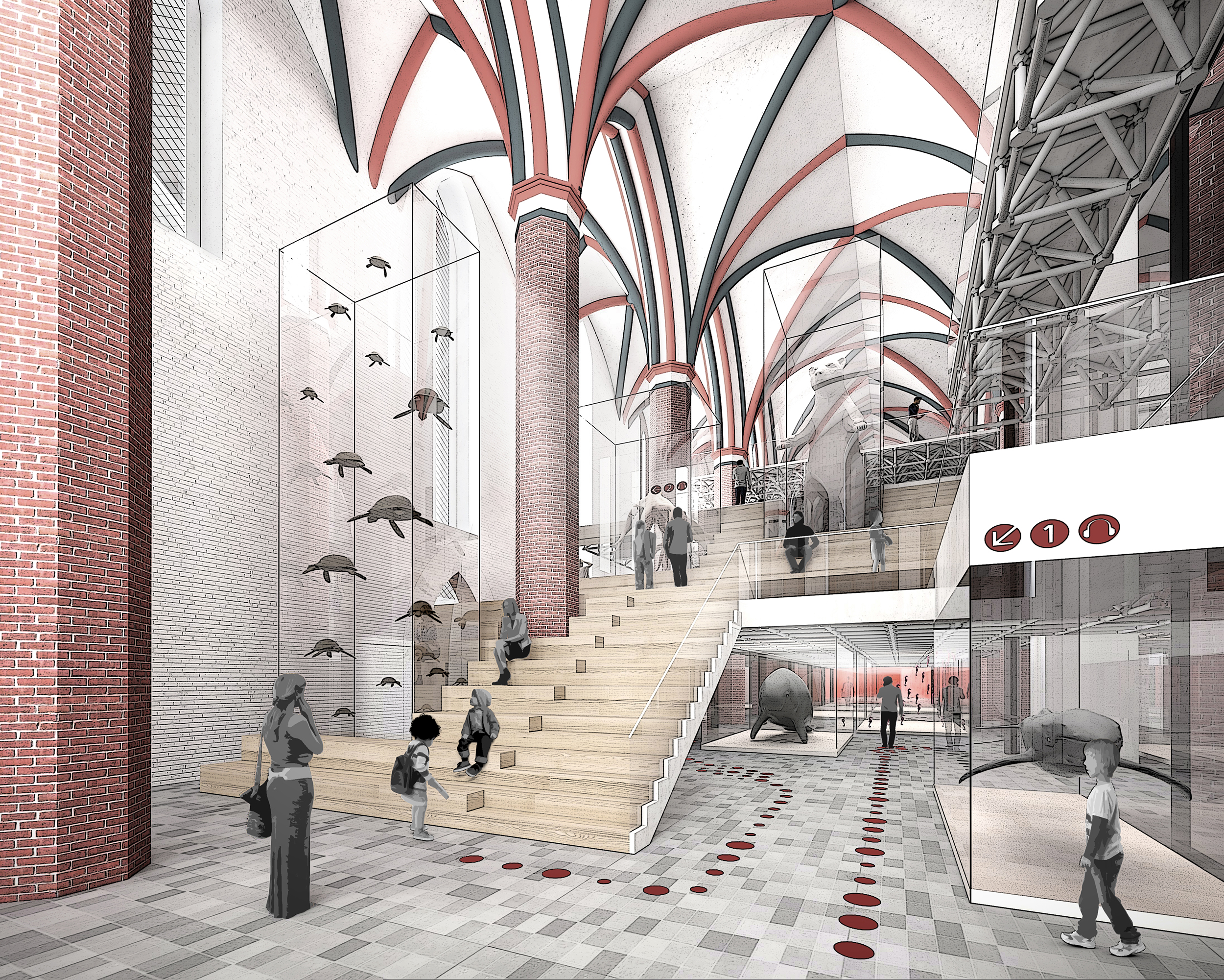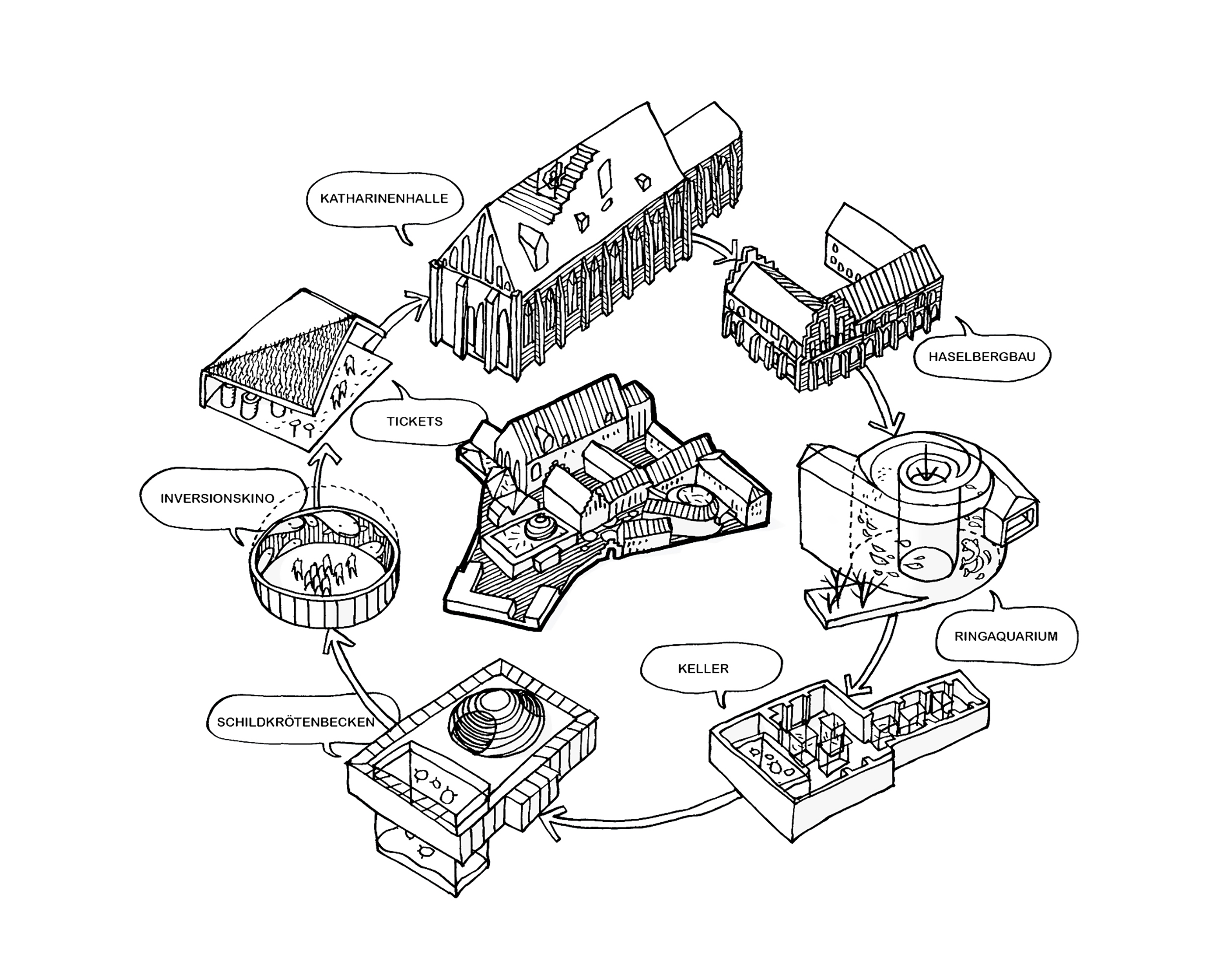 The buildings of the Oceanographic Museum, located on the grounds of the former Dominican monastery in Stralsund’s historic old town, are characterized by the architectural heterogeneity that has developed over eight centuries — a rich spatial diversity and density shaped by time.